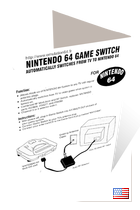 Table des Matières : Function Instructions (Manuel en Anglais - 1 pages) Qu'est ce que le Nippon America - Nintendo 64 Game Switch ? Le "Nintendo 64 Game Switch" est un accessoire non officiel permettant de connecter votre console Nintendo 64 directement au téléviseur via la prise antenne. L'appareil passe automatiquement de la télévision au jeu vidéo lorsque la Nintendo 64 est allumée. Aperçu du Nippon America - Nintendo 64 Game Switch : |