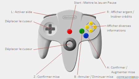 Comment Jouer ![]() Si vous souhaitez obtenir plus d'informations sur les commandes de Golden Nugget 64, vous pouvez consulter le Manuel du Jeu.