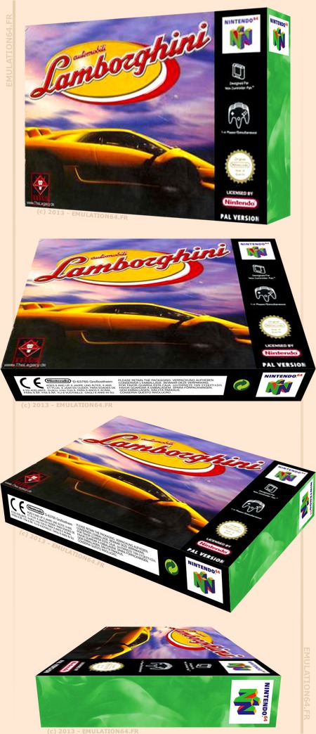 Super Speed Race 64 : Informations : Plate-forme : Nintendo 64 (N64) Etat du jeu : Disponible Date de sortie française : 1997 1997 (USA) - 1997 (Japon) Genre : Course Thème : Automobile Multijoueur : 1 à 4 Développeur : Titus Editeur : Titus Jeu également connu sous le Nom : Automobili Lamborghini |